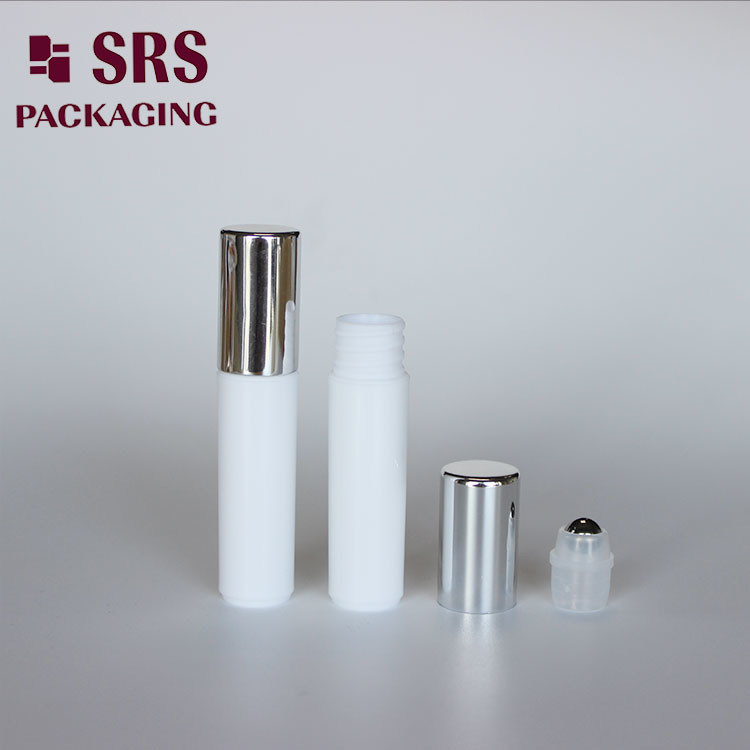 SRS пустой косметический флакон 5 мл с белым пластиковым роликом и серебряной крышкой